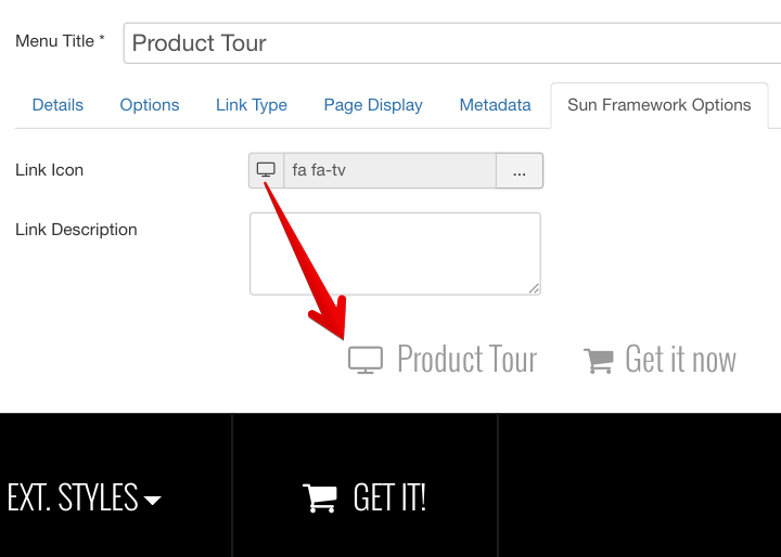 Top Menu allows you to arrange menu items in horizontal line and assign icons to them. All icons are configured directly in menu item settings page which is very convenient.